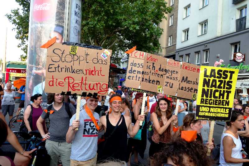 Über 500 Antirassist_innen demonstrierten am Donnerstag, 9. August in Wien unter dem Motto „Seebrücke“ in Solidarität mit Flüchtlingen und…