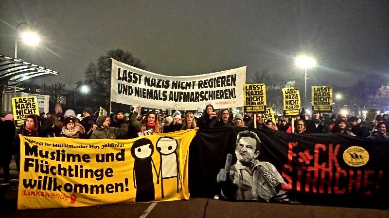 Wie sich in unseren Gesprächen mit Teilnehmer_innen gezeigt hat, dominierten den bislang größten Protest gegen den FPÖ-Akademikerball vor allem zwei Motive – die aktuellen Enthüllungen über den braunen Sumpf in der Burschenschaft „Germania“ und der generelle Protest gegen die schwarz-blaue Koalitionsregierung mit all ihren schändlichen Vorhaben. Organisiert wurde die Großdemo von der Offensive gegen Rechts.
