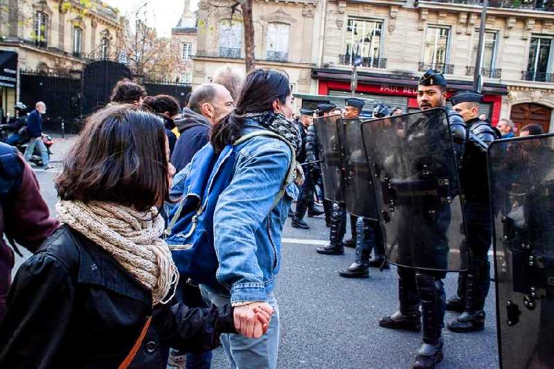 Nach den schrecklichen Anschlägen in Frankreich demonstrierten am Sonntag, 22. November, tausende Menschen in Frankreich gegen Krieg und in…