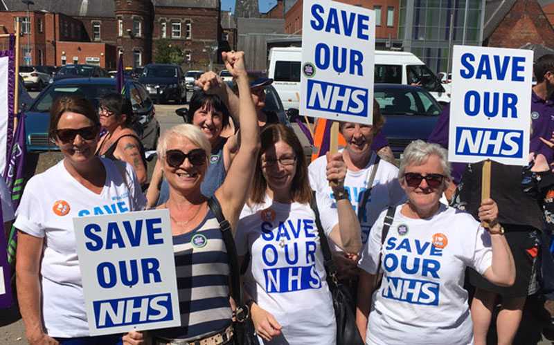 Hunderte Krankenhausangestellte streikten in Wigan im Nordwesten Englands gegen die Privatisierung von Jobs im Gesundheitsbereich.