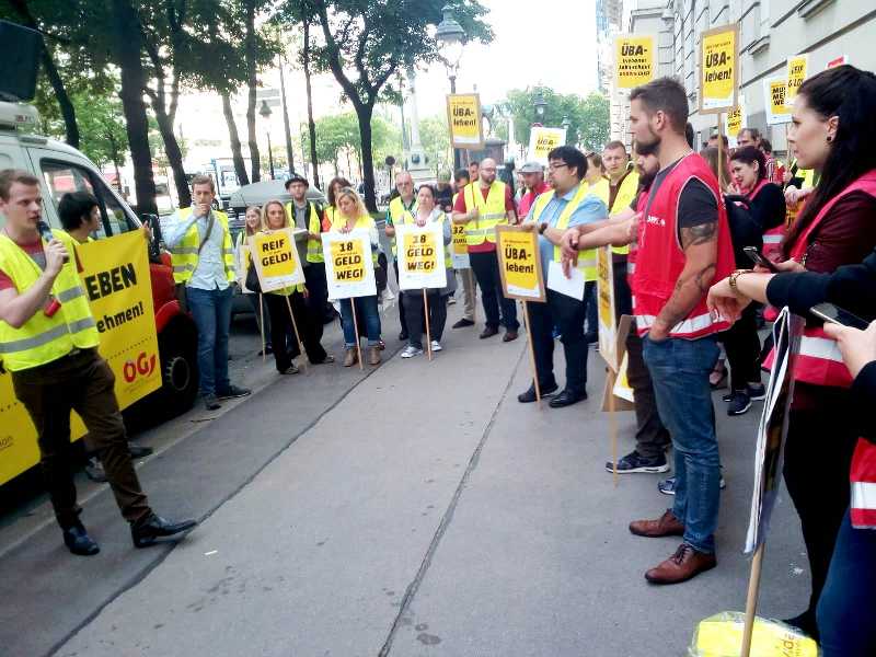Die Gewerkschaften BauHolz-Wien-Jugend, vida Jugend, Österreichische Gewerkschaftsjugend (ÖGJ), Younion und GPA-djp Jugend protestierten am Mittwoch, 23. Mai gegen Kürzungen…